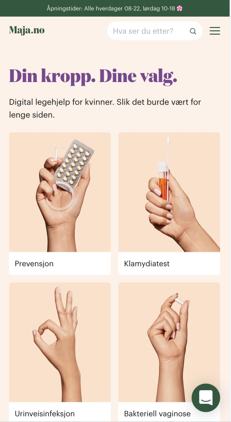 For de som har et større behov enn hva Shopify dekker kan vi fint kombinere plattformen med andre systemer. For vår kunde Maja.no, som selger e-resepter på nett, har vi satt opp Shopify som netthandelsplattform, Sanity som CMS og frontend-system, i tillegg til å ha utviklet en custom webapp for skjemabestilling.